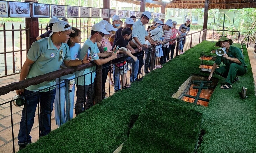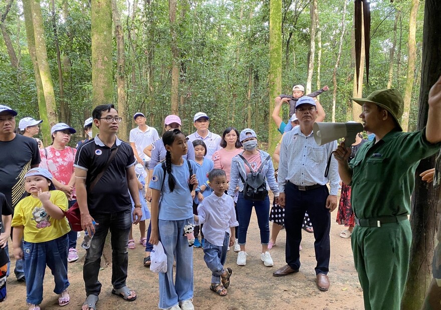Hình ảnh 4: Đoàn nghe Thuyết minh viên trình bày tại Khu Di tích Địa đạo Củ Chi