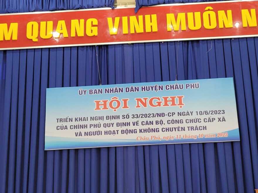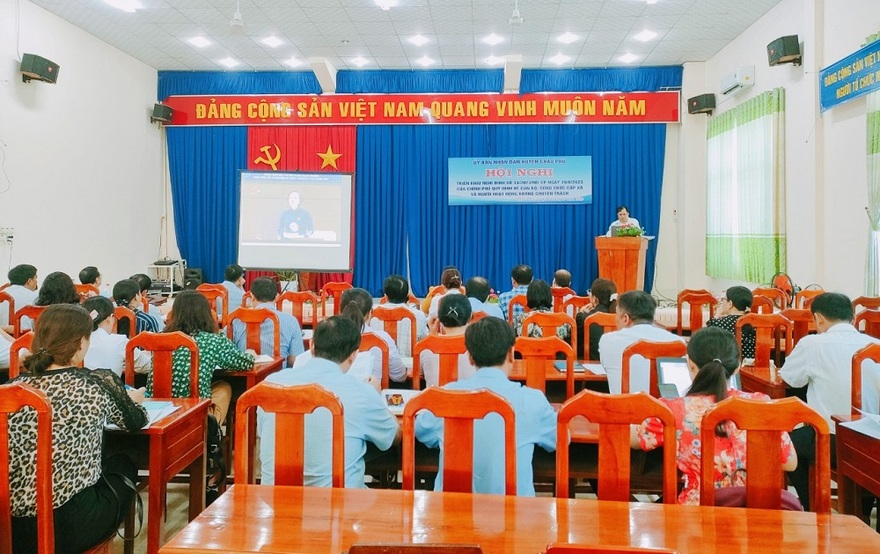 Ủy ban nhân dân thị xã Tân Châu và huyện Châu Phú vừa tổ chức Hội nghị triển khai, hướng dẫn thực hiện những quy định mới liên quan đến cán bộ, công chức cấp xã và người hoạt động không chuyên trách cho đối tượng là cán bộ lãnh đạo chủ chốt và công chức Văn phòng – thống kê phụ trách nội vụ, công chức Tài chính – kế toán phụ trách Kế toán tại các xã, phường, thị trấn trên địa bàn.