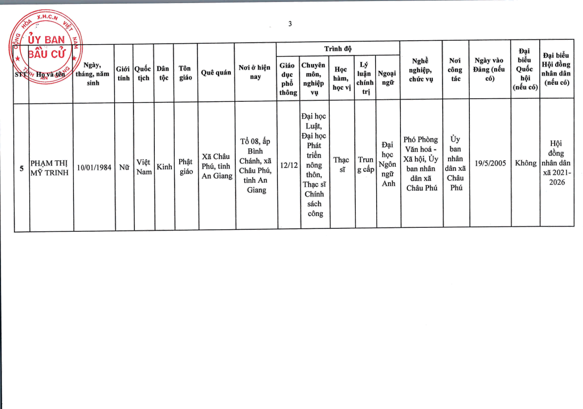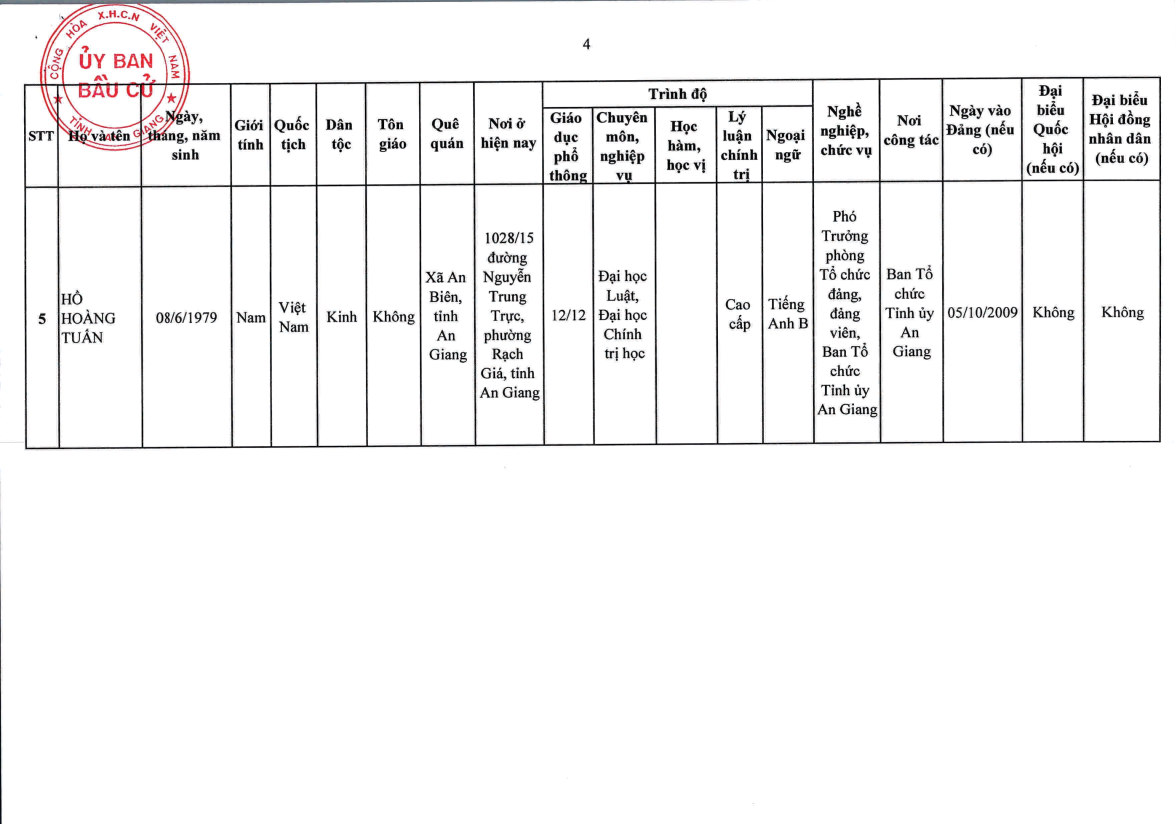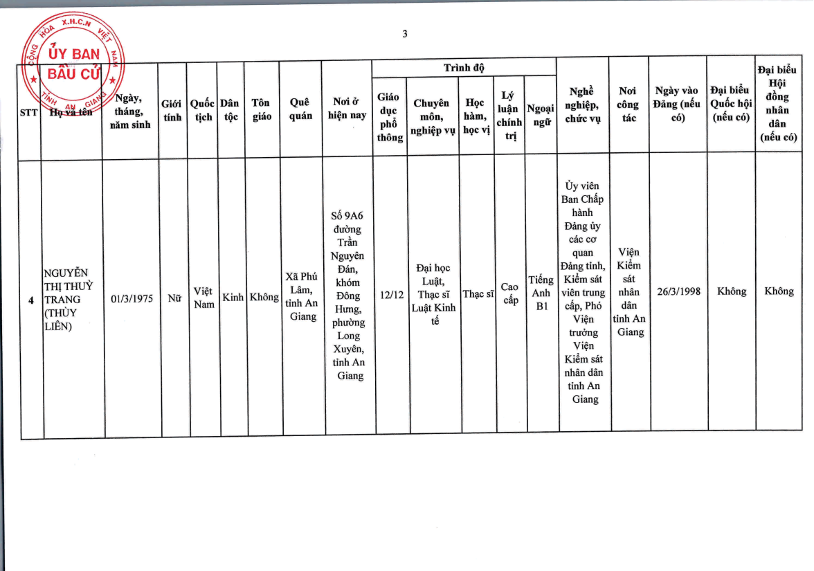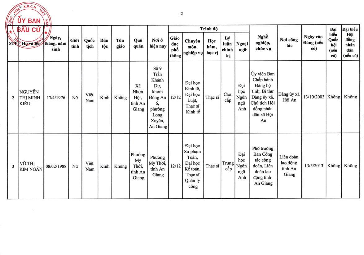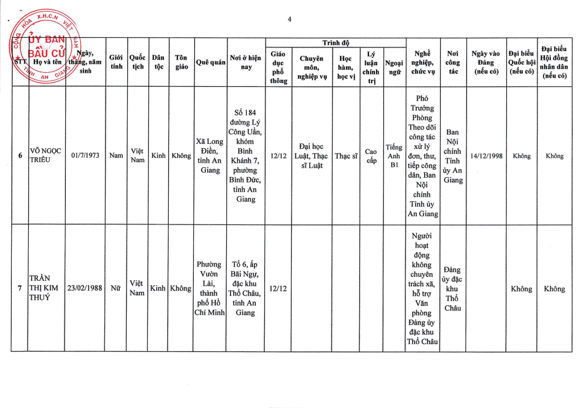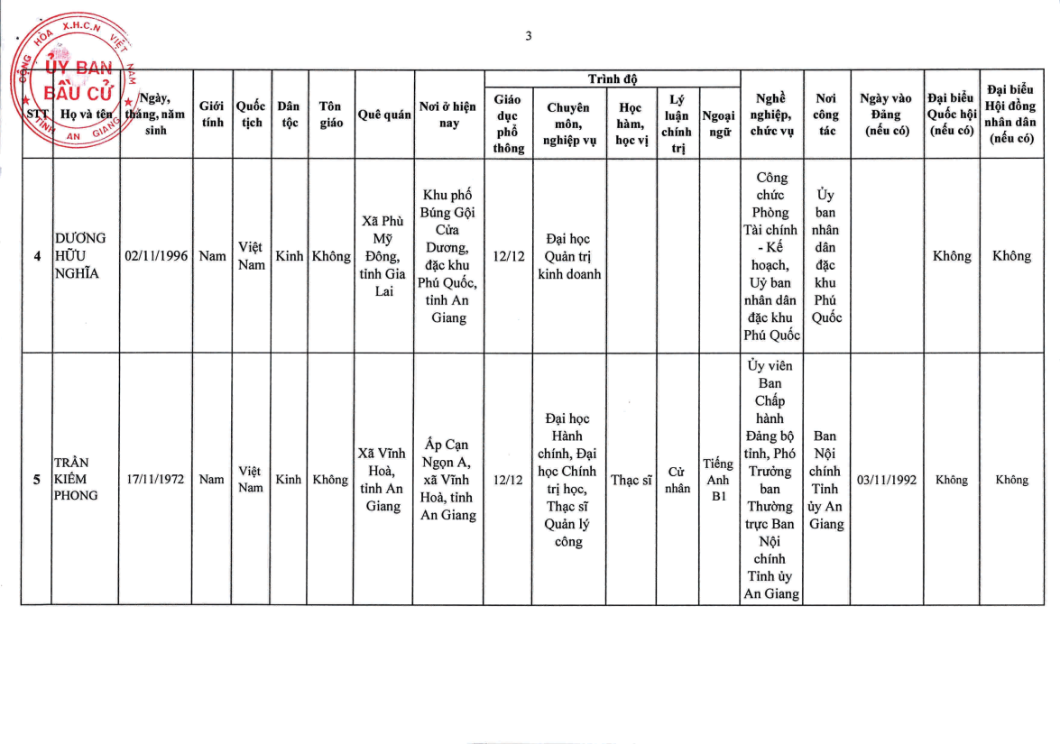 Công bố danh sách chính thức những người ứng cử đại biểu Hội đồng nhân dân tỉnh An Giang khóa XI nhiệm kỳ 2026 - 2031 theo từng đơn vị bầu cử