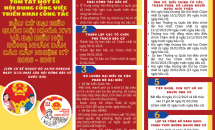 Lịch trình thời gian và các công việc phải thực hiện trong cuộc bầu cử ĐBQH khóa XVI và HĐND các cấp nhiệm kỳ 2026-2031
