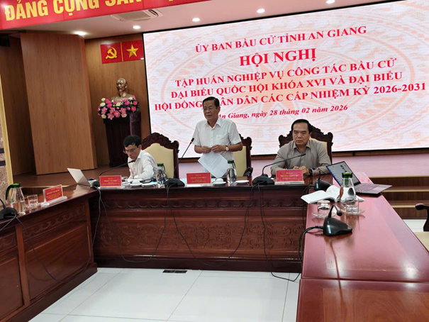 Sáng ngày 28/02/2026, Tiểu ban Tổng hợp và Nghiệp vụ bầu cử tỉnh An Giang đã tổ chức Hội nghị tập huấn nghiệp vụ công tác tổ chức bầu cử đại biểu Quốc hội khóa XVI và đại biểu Hội đồng nhân dân các cấp nhiệm kỳ 2026 - 2031. Hội nghị được triển khai sâu rộng bằng hình thức trực tiếp kết hợp trực tuyến đến tận cấp xã, phường trên địa bàn tỉnh.