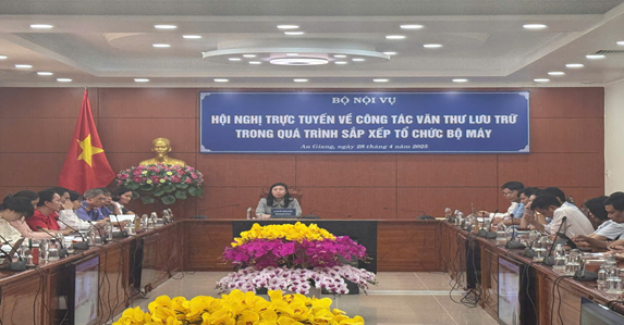 Sáng ngày 28 tháng 4 năm 2025, Cục Văn thư và Lưu trữ nhà nước, Bộ Nội vụ tổ chức Hội nghị trực tuyến toàn quốc hướng dẫn nghiệp vụ văn thư, lưu trữ và số hóa tài liệu lưu trữ trong quá trình sắp xếp tổ chức bộ máy, đơn vị hành chính các cấp. Hội nghị do đồng chí Đặng Thanh Tùng - Cục trưởng Cục Văn thư và Lưu trữ nhà nước chủ trì. Tham dự Hội nghị còn có các đồng chí Phó Cục trưởng, Trưởng, phó các tổ chức hành chính và đơn vị sự nghiệp thuộc Cục; lãnh đạo Văn phòng, công chức, viên chức làm công tác văn thư, lưu trữ tại các bộ, cơ quan ngang bộ, cơ quan thuộc Chính phủ tham dự Hội nghị tại các điểm cầu.