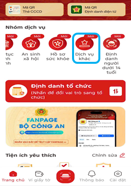 Bước 1: Truy cập màn chức năng “Dịch vụ khác”.
