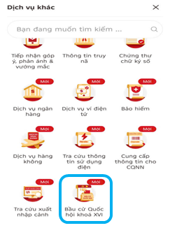 Bước 2: Truy cập màn chức năng “Bầu cử Quốc hội khóa XVI”.
