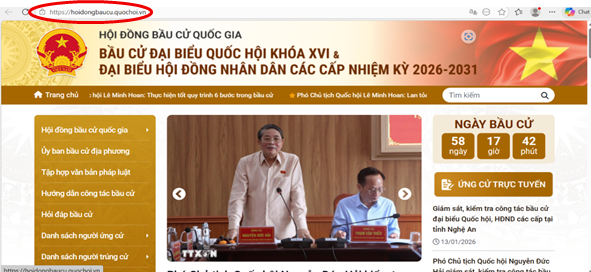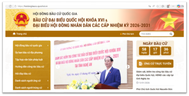 Bước 1: Truy cập trang web theo địa chỉ: https://hoidongbaucu.quochoi.vn/