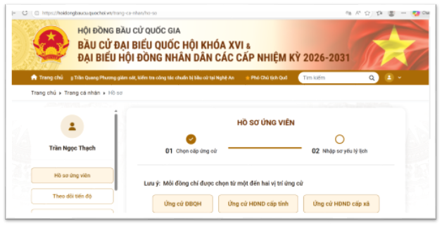 Người ứng cử đại biểu Quốc hội, đại biểu Hội đồng nhân dân các cấp trước khi nộp hồ sơ ứng cử theo các điểm a, b, c khoản 1 Điều 3 Nghị quyết số 40/NQ-HĐBCQG ngày 29/9/2025 của Hội đồng bầu cử Quốc gia cần khai đơn ứng cử và tiểu sử tóm tắt trên Trang thông tin điện tử của Hội đồng bầu cử Quốc gia được thực hiện theo các bước như sau: