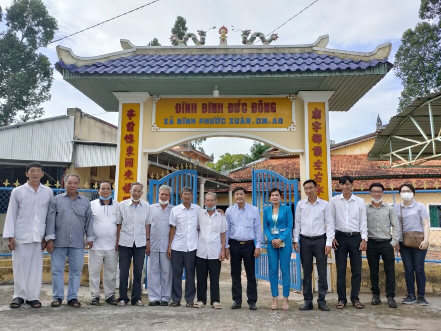 Đoàn khảo sát chụp ảnh lưu niệm với Ban Tế tự Đình thần Bình Đức Đông - xã Bình Phước Xuân – huyện Chợ Mới