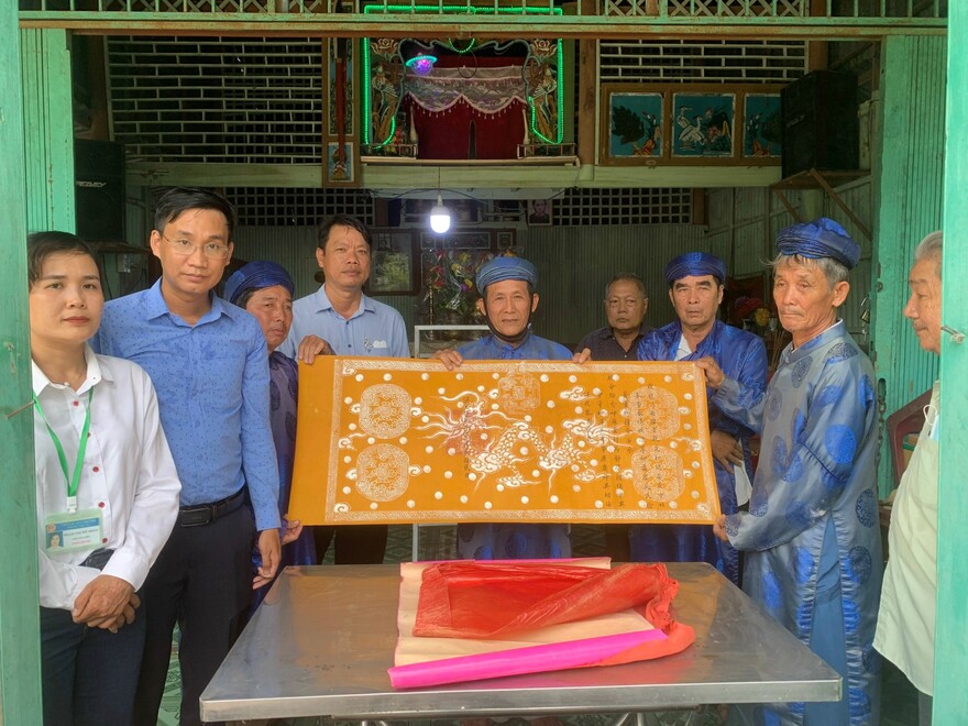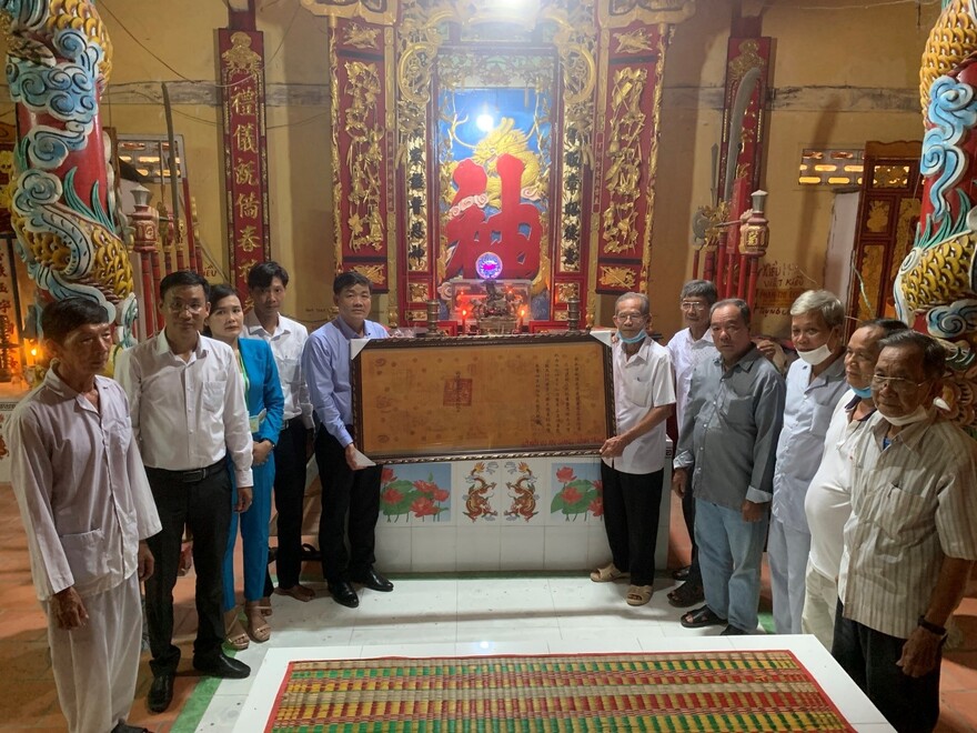 Đoàn trao tặng bản sao Sắc phong của Đình thần Tân Phước - xã Bình Phước Xuân – huyện Chợ Mới