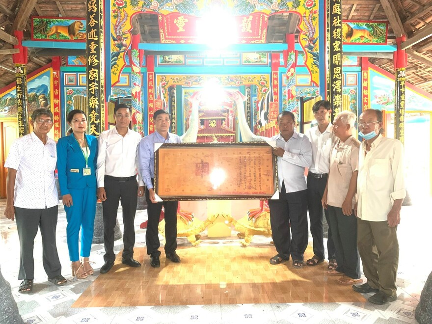 Đoàn trao tặng bản sao Sắc phong của Đình thần Bình Đức Đông - xã Bình Phước Xuân – huyện Chợ Mới