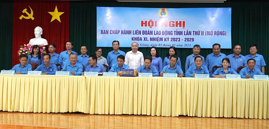 Tại hội nghị, Ban Thường vụ Liên đoàn Lao động tỉnh An Giang đã phát động phong trào thi đua yêu nước năm 2024 và chào mừng kỷ niệm 95 năm Ngày thành lập Công đoàn Việt Nam với 5 nội dung lớn. Đồng thời, Liên đoàn Lao động tỉnh An Giang và Liên đoàn Lao động các huyện, thị xã, thành phố, công đoàn ngành, công đoàn các khu công nghiệp tỉnh, công đoàn viên chức tỉnh và 3 khối thi đua trực thuộc Liên đoàn Lao động tỉnh An Giang ký kết giao ước thi đua năm 2024.