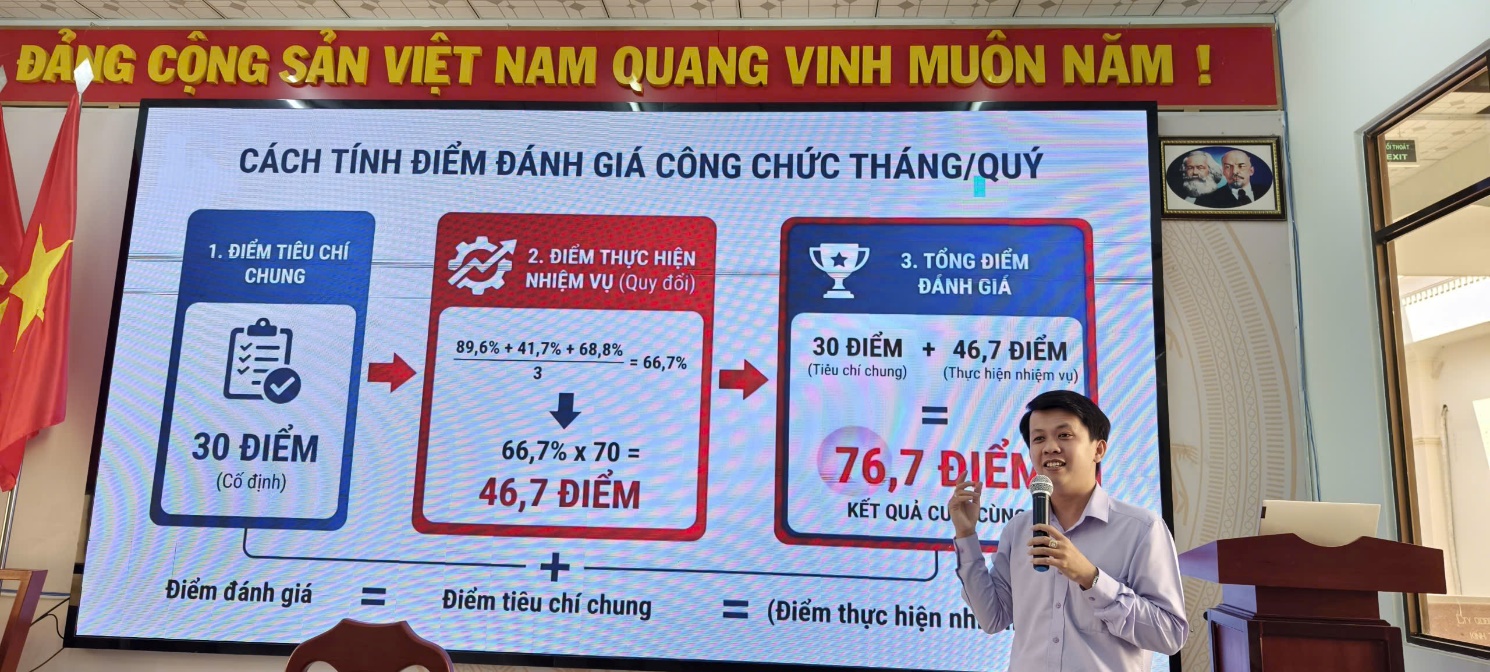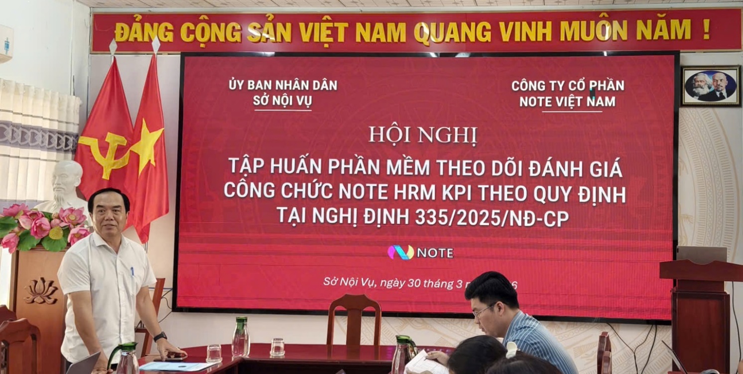 Việc triển khai phần mềm nhằm thực hiện Nghị định số 335/2025/NĐ-CP của Chính phủ về quy định đánh giá, xếp loại chất lượng đối với cơ quan hành chính nhà nước và công chức. Tại buổi tập huấn, các đại biểu đã được đại diện Công ty Cổ phần NOTE Việt Nam hướng dẫn, tập huấn sử dụng các tính năng của phần mềm NOTE HRM KPI để tối ưu hóa quy trình đánh giá, xếp loại tổ chức hành chính và công chức dựa vào kết quả đánh giá theo tiêu chí chung và tiêu chí về kết quả thực hiện nhiệm vụ của tổ chức, công chức; kết hợp giữa tiêu chí định tính và tiêu chí định lượng, trong đó, đặc biệt chú trọng các tiêu chí định lượng về kết quả, hiệu quả thực hiện nhiệm vụ.