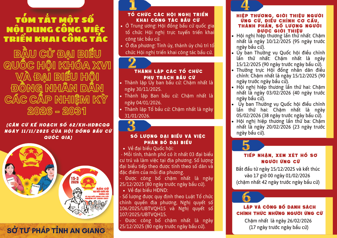 TÓM TẮT MỘT SỐ NỘI DUNG CÔNG VIỆC TRIỂN KHAI CÔNG TÁC BẦU CỬ ĐẠI BIỂU QUỐC HỘI KHÓA XVI VÀ ĐẠI BIỂU HỘI ĐỒNG NHÂN DÂN CÁC CẤP NHIỆM KỲ 2026 - 2031